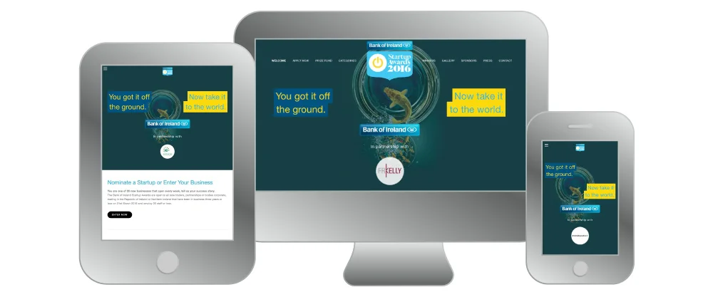 Our web agency is delighted to have worked on the Bank of Ireland Startup Awards website design and development. This annual event rewards owners and managers for their efforts in building startup businesses across the country. The website design is very modern with a responsive layout that works well across mobile devices like phones, tablets, laptops and desktop computers.